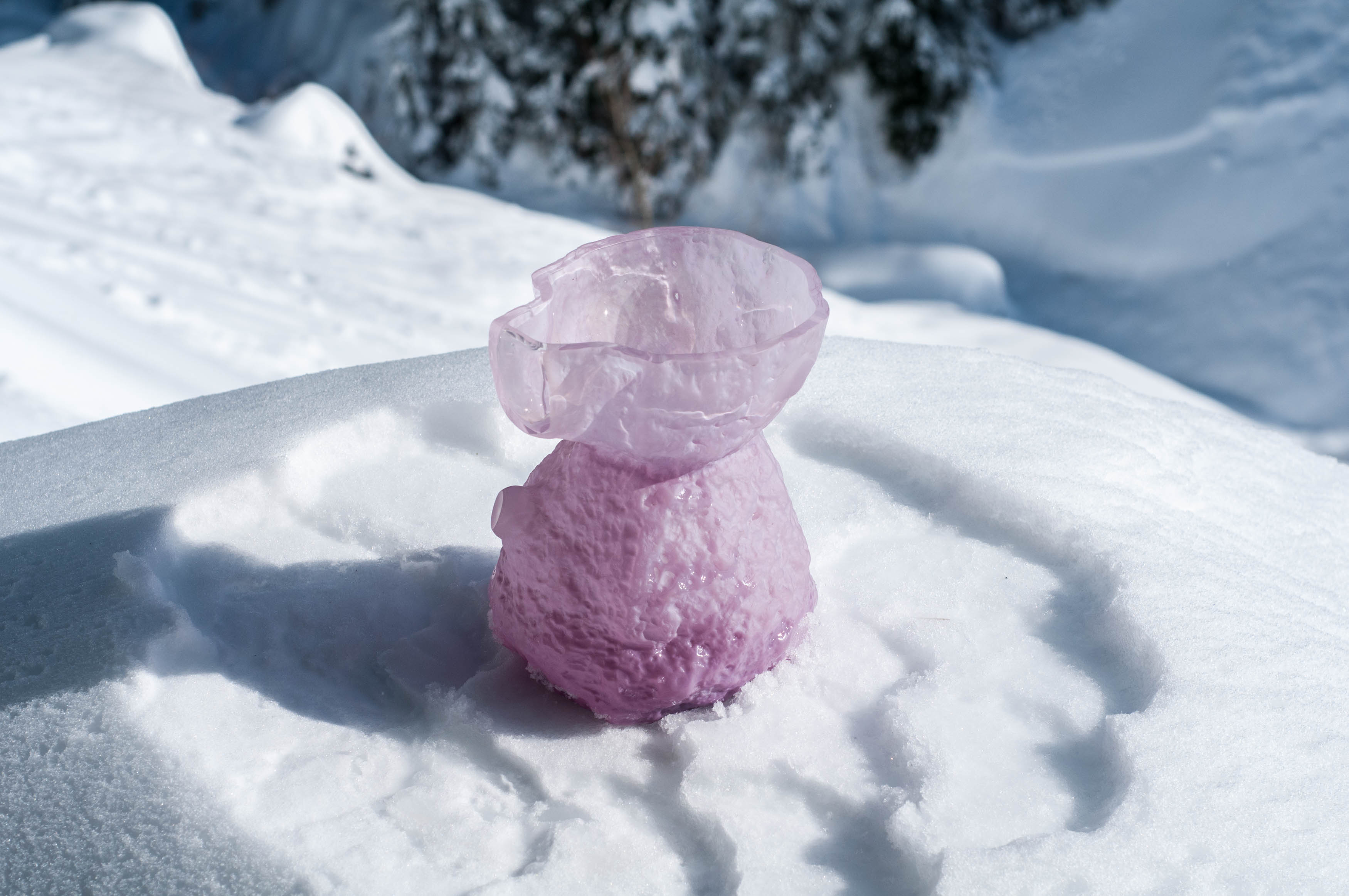 Sandblasted outer limits hourglass vessel with lens and butthole aperture